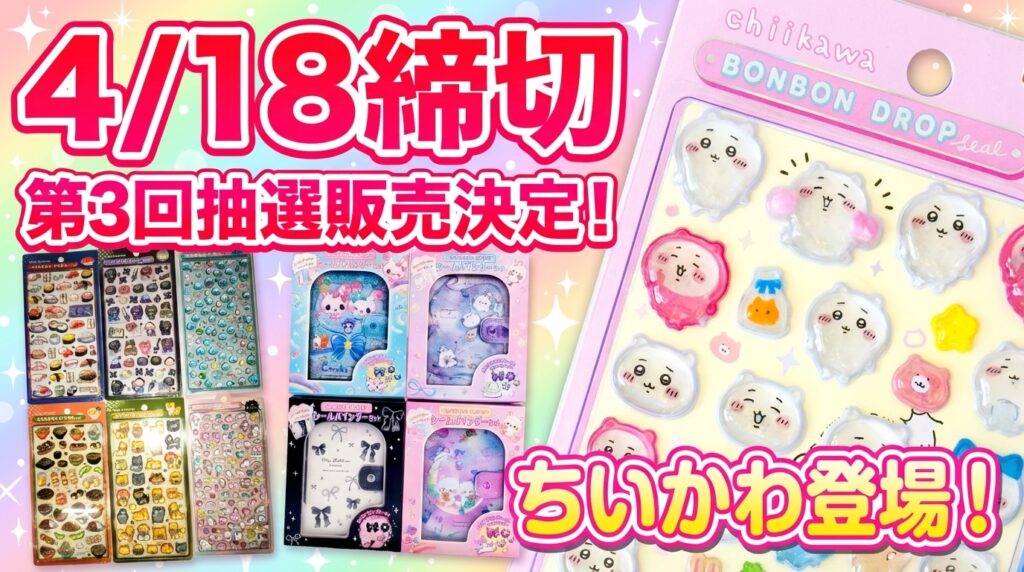 【4/12締切】ちいかわ公式!ちいかわ ボンボンドロップシールの抽選販売が決定!@ちいかわらんど全店