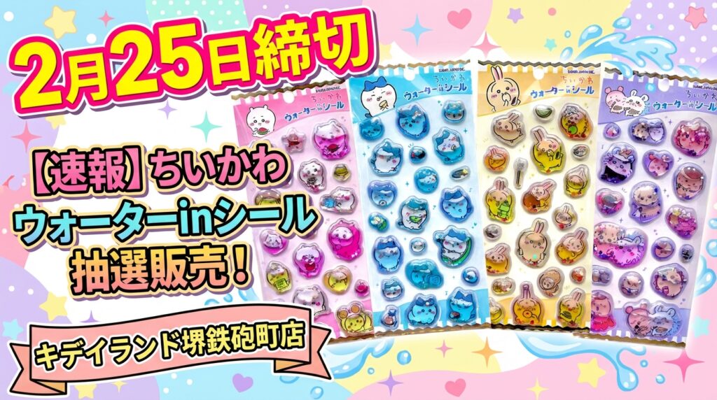 【2/25締切】ちいかわ ウォーターinシールの事前抽選販売が決定!@キデイランド堺鉄砲町店