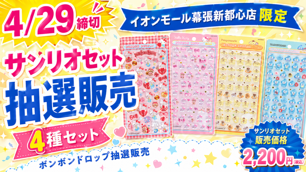 【4/21締切】サンリオ大&mini4種のボンボンドロップシールの抽選販売が決定!@キデイランド心斎橋パルコ店