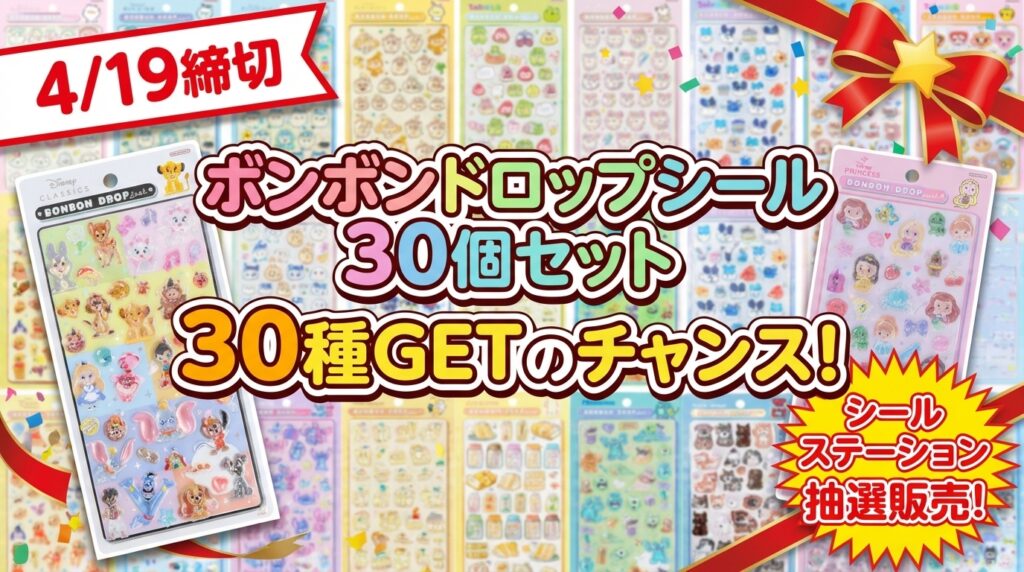 【4/19締切】全30種!ディズニー・たまごっち・ちいかわ・サンリオ・和柄のボンボンドロップシールの抽選販売が決定!@シールステーション