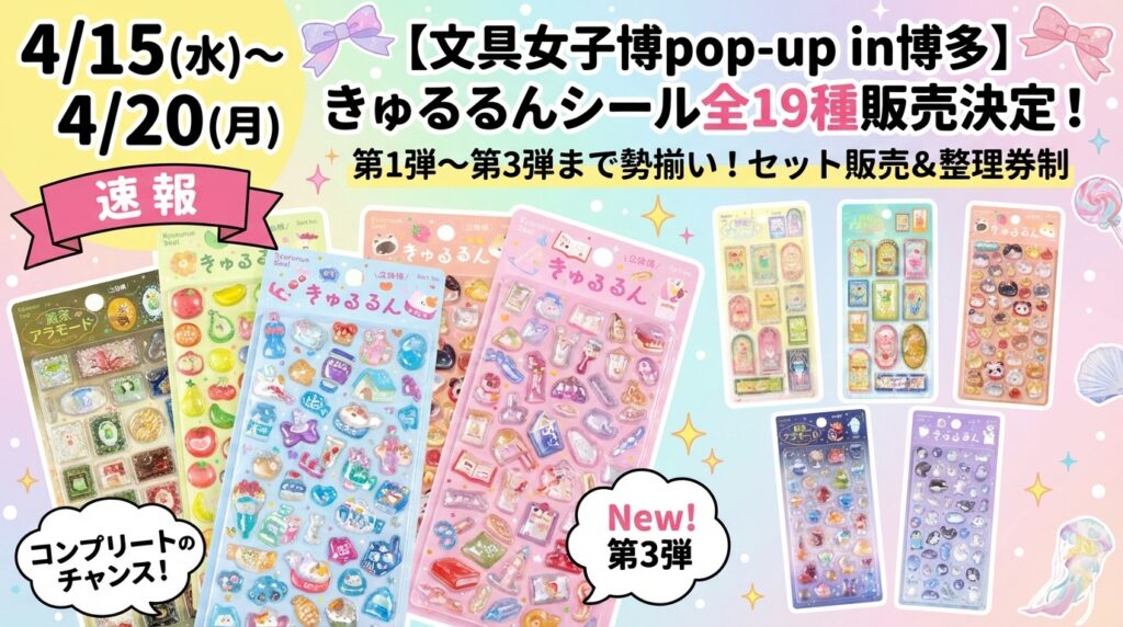 【4/20終了】全19種!BGMきゅるるんシールの販売が決定!@文具女子博pop-up in博多