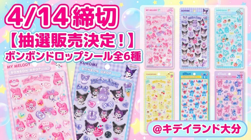 【4/14締切】全6種!ボンボンドロップシールの抽選販売が決定!@キデイランドアミュプラザおおいた店