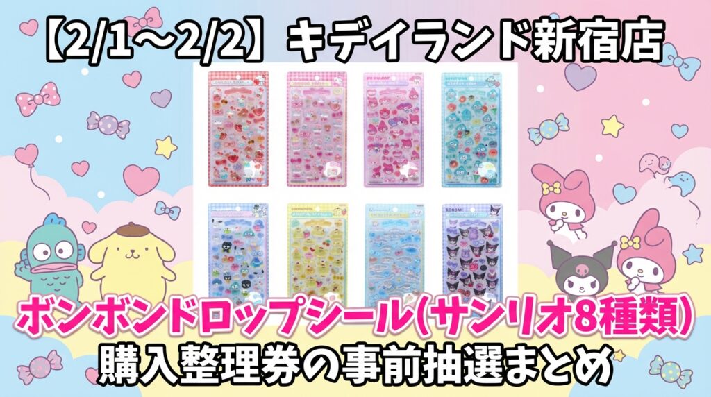 【速報】【2/1~2/2〆】 キデイランド新宿店 ボンボンドロップシール(サンリオ)購入整理券の事前抽選が決定!