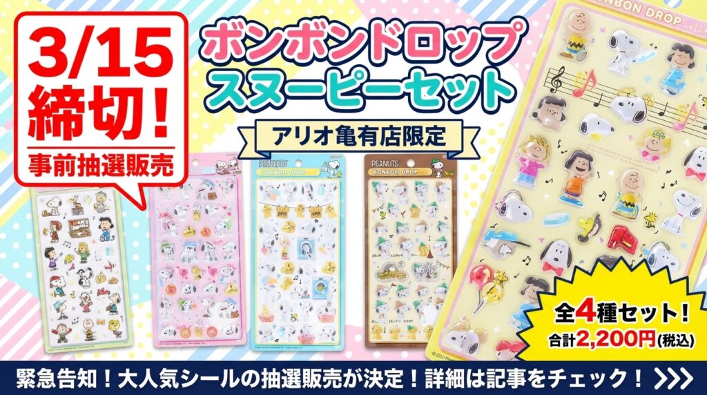 【3/12締切】大人気ボンボンドロップシール等の抽選販売が決定!@パーティリコ 川崎ルフロン店
