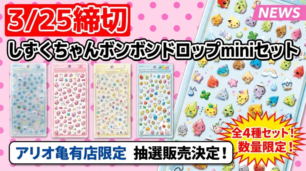 【3/25締切】しずくちゃん ボンボンドロップminiの抽選販売が決定!@パーティリコ アリオ亀有店