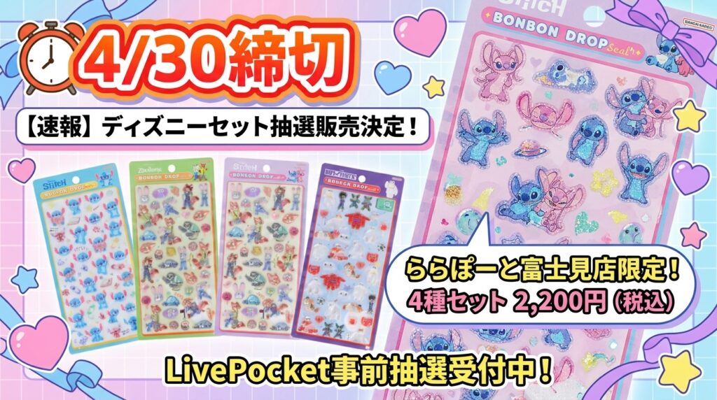 【4/30締切】全4種!ディズニーセットの抽選販売が決定!@パーティリコ ららぽーと富士見店