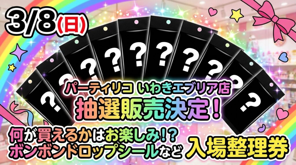 【3/4締切】ボンボンドロップシールなど販売整理券の抽選受付が決定!@パーティリコ いわきエブリア店
