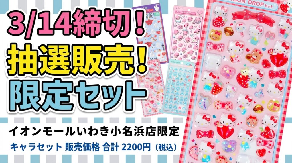 【3/4受付開始】全3種セット!サンリオうるちゅるポップシール抽選販売が決定@パーティリコ東京ソラマチ店