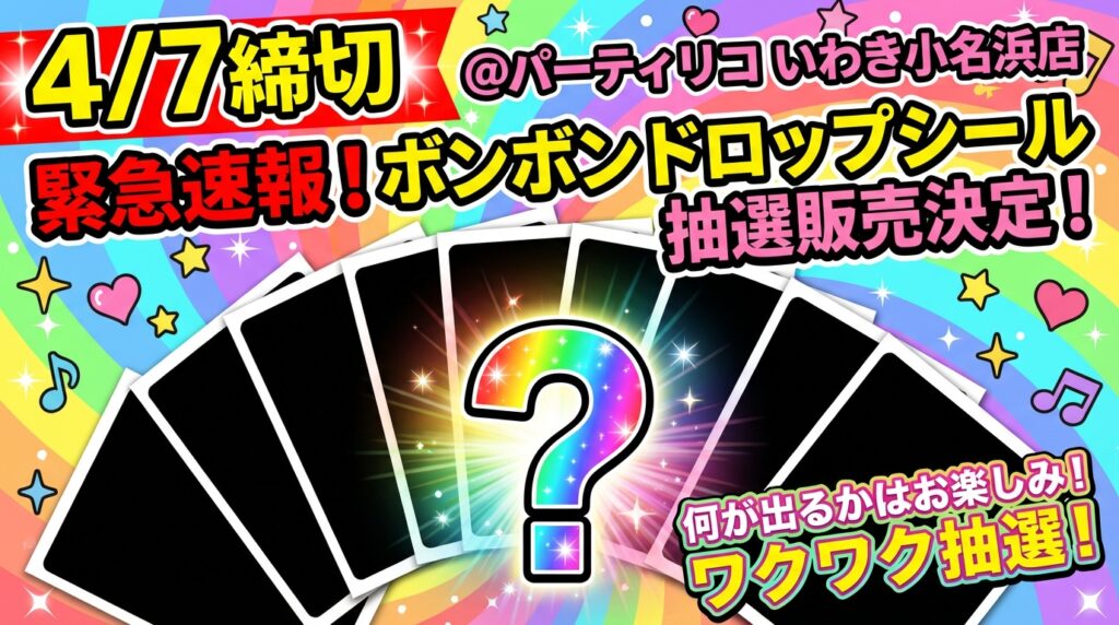 【4/7締切】ボンボンドロップシールの抽選販売が決定!@パーティリコ いわき小名浜店