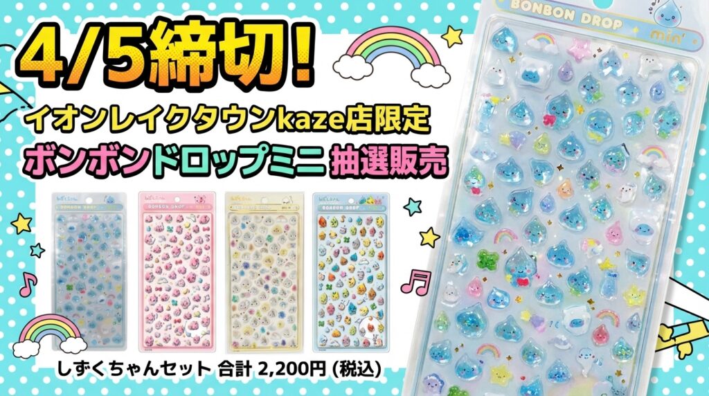 【4/5締切】しずくちゃん ボンボンminiしずくちゃんセットの抽選販売が決定!@パーティリコ イオンレイクタウンkaze店