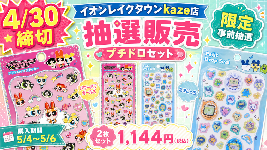 【4/25締切】たまごっちのボンボンドロップシールとプチドロップシールの抽選販売が決定!@パーティリコ イオンレイクタウンkaze店