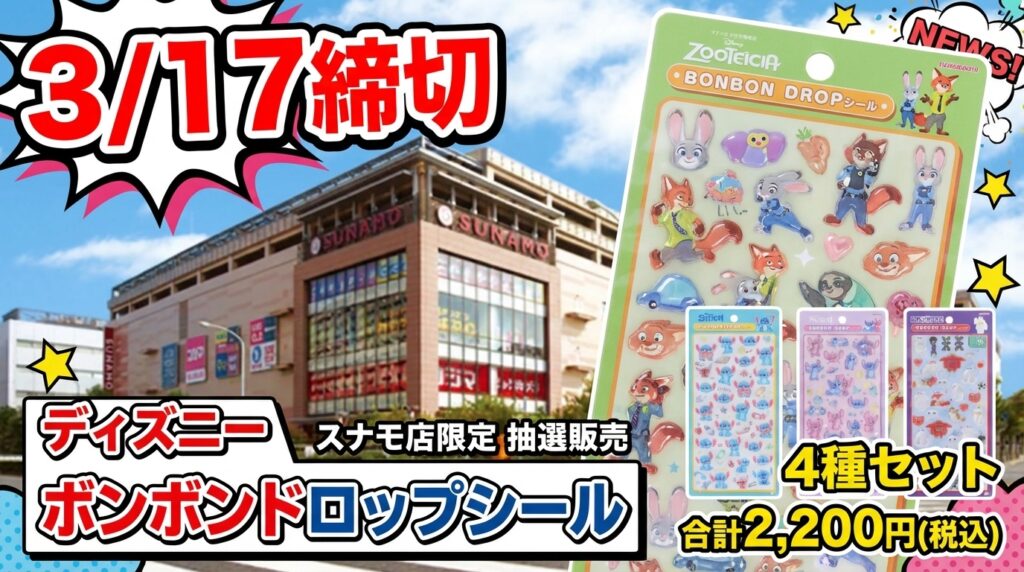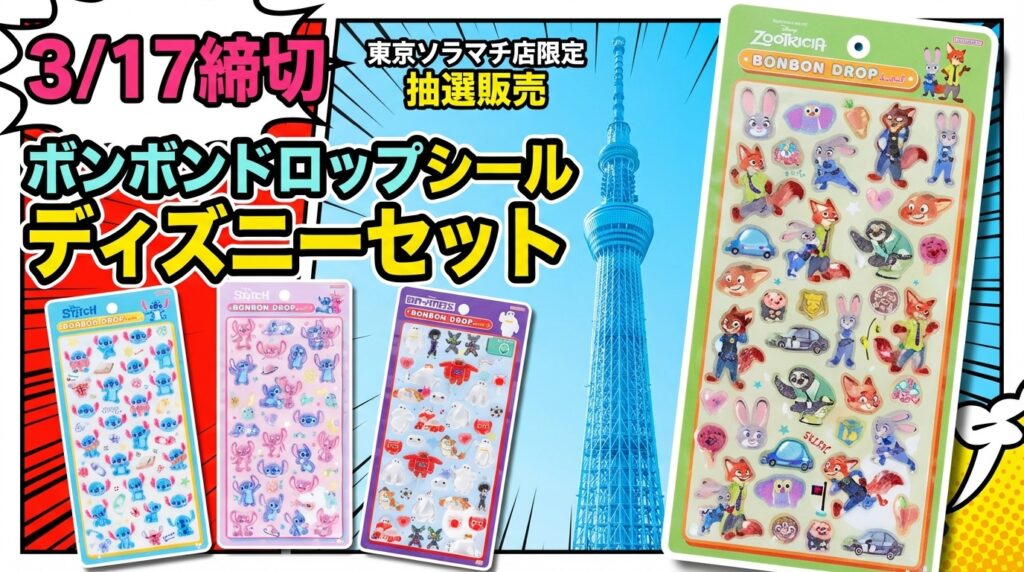 【3/12締切】全8種!ディズニーボンボンドロップシールの抽選販売が決定!@キデイランド堺鉄砲町店