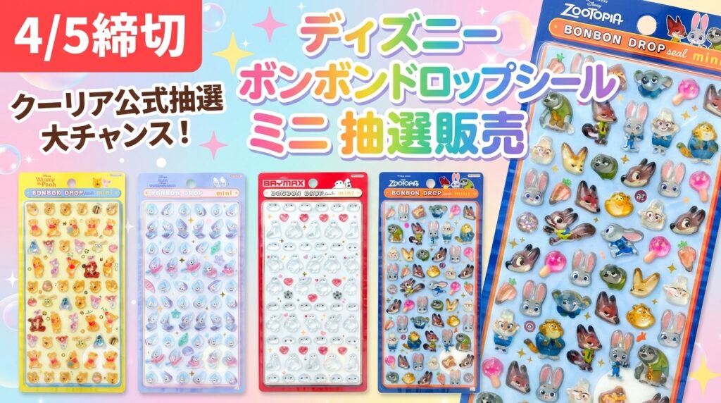 【4/5締切】ディズニー ボンボンドロップシールminiの抽選販売が決定!前回1000名以上が当選した伝説の大チャンス再び!@クーリア公式
