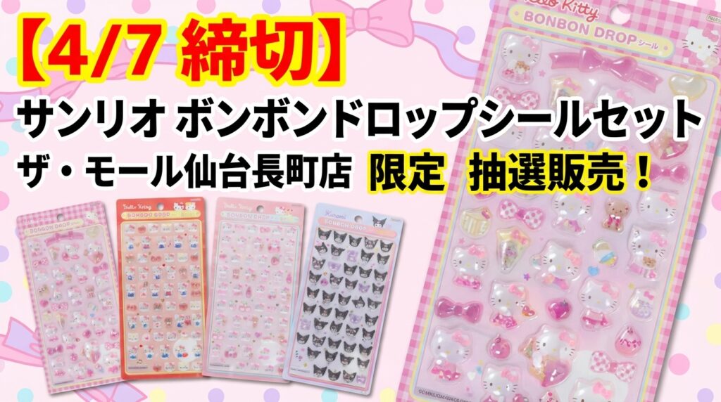 【4/7締切】サンリオのボンボンドロップシールセットの抽選販売が決定!@パーティリコ ザザ・モール仙台長町店