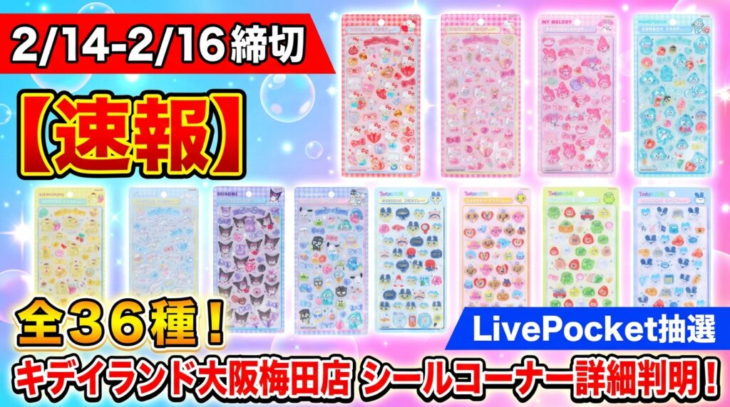 【速報|締切2/8】キデイランド新宿店「サンリオボンボンドロップシールmini」事前抽選決定!LivePocketで応募