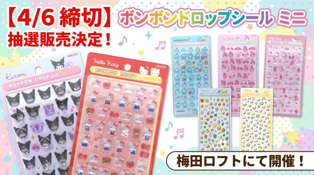【3/30締切】サンリオ5種!ボンボンドロップシールの抽選販売が決定!@パーティリコ ららぽーと富士見