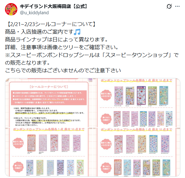 | 会場 | キデイランド大阪梅田店 シールコーナー |