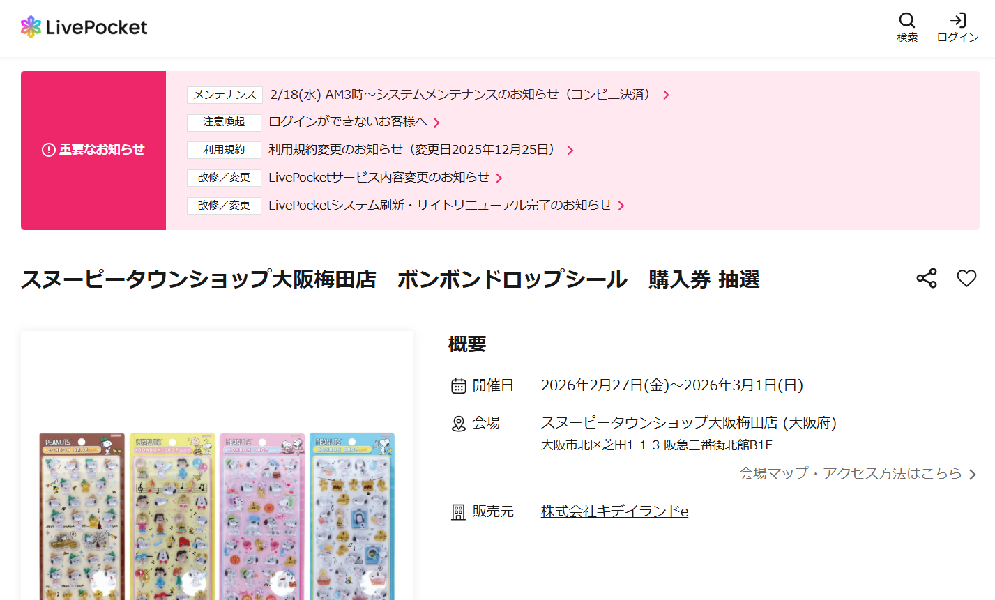 【速報】【2/22締切】スヌーピータウン大阪梅田でボンボンドロップシール抽選販売決定!申込方法と注意点まとめ