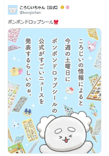 ころじいちゃん公式アカウントより、ボンボンドロップシールに関するすごいニュースが今週土曜日に発表されると緊急予告がありました。