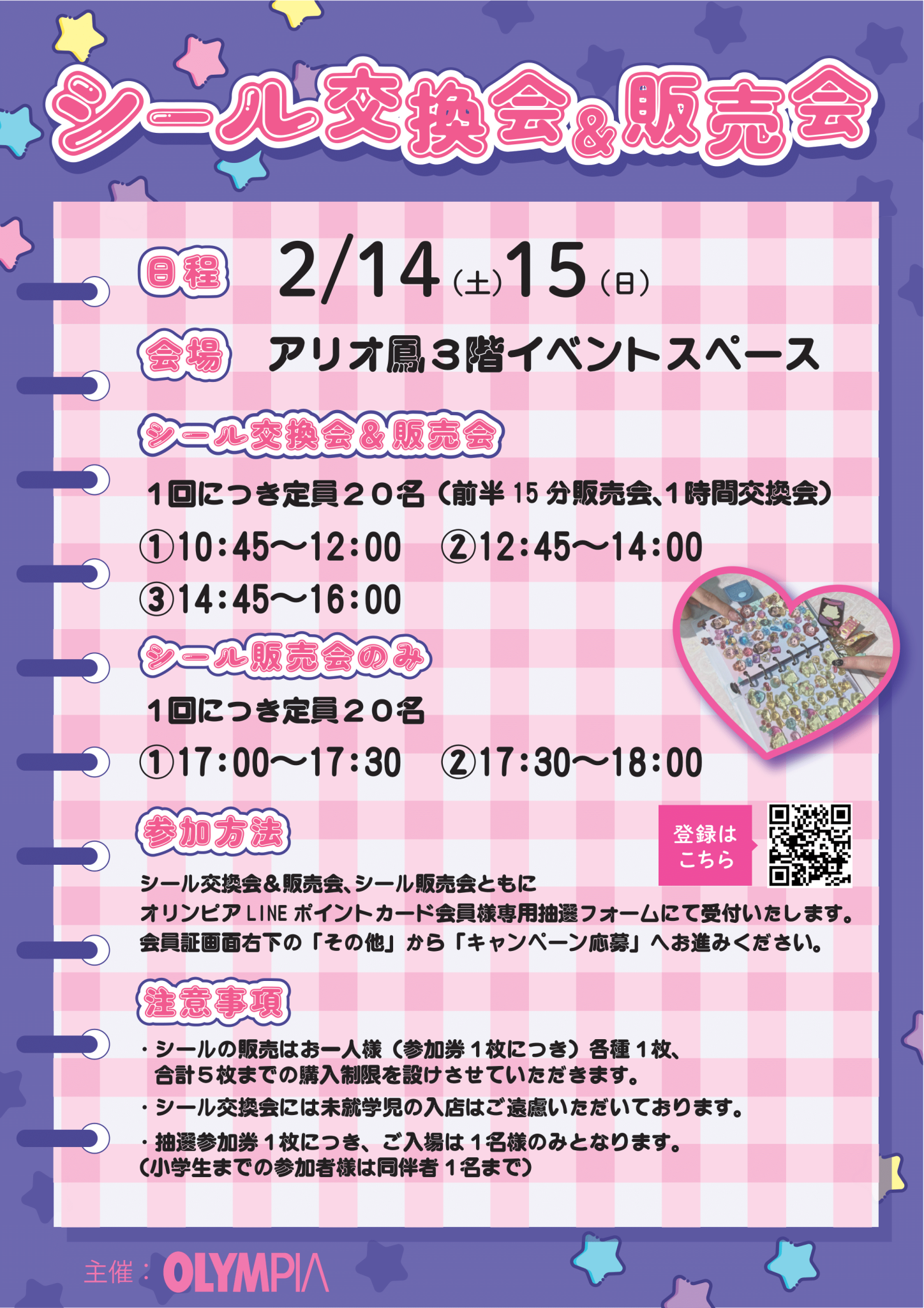 【大阪・堺】オリンピア アリオ鳳店 第2回「シール交換会&販売会」参加抽選