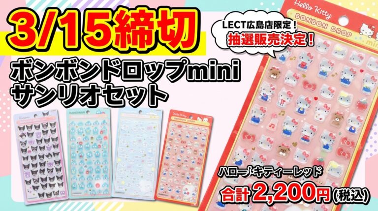 【3/15締切】サンリオ ボンボンドロップシールminiの事前抽選販売が決定!@パーティリコ LECT広島店
