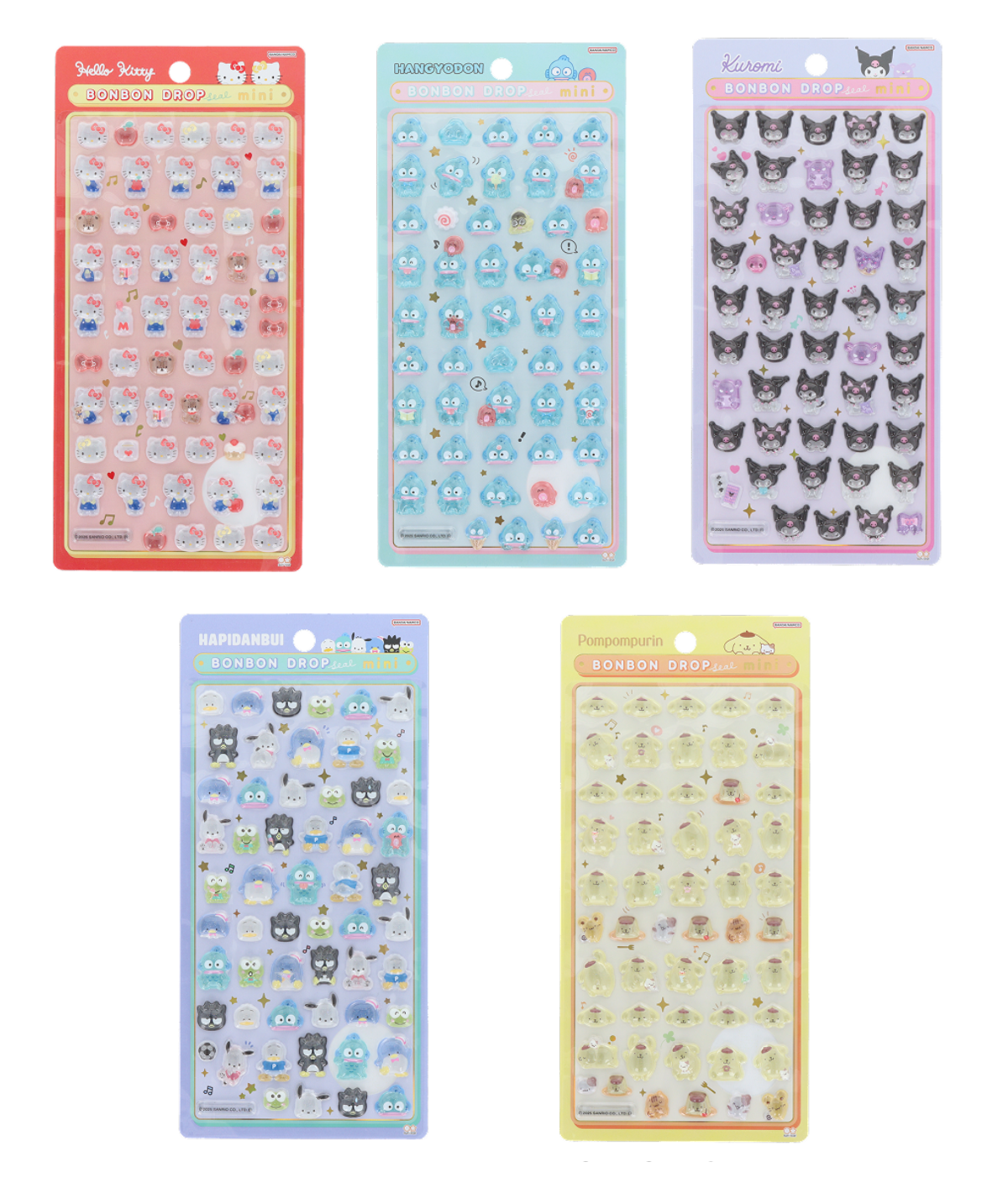 • ボンボンドロップシール サンリオmini全5種(ハローキティA、ハンギョドン、ポムポムプリン、クロミ、はぴだんぶい)