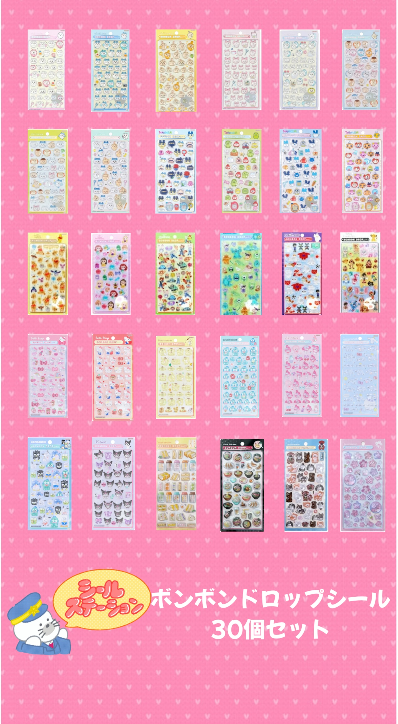 各ジャンルのシールが組み合わさり、合計30個が届く豪華なパッケージとなっています。