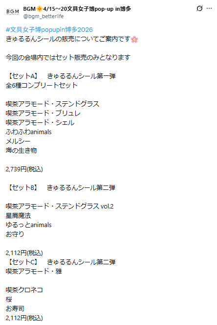 | 公式ページ | https://bungujoshi.com/event/pop-up-in-hakata2026/?utm_source=X&utm_medium=post&utm_campaign=sns |