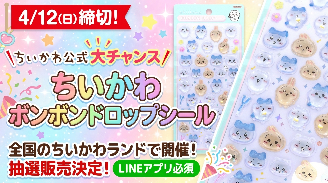 【4/12締切】ちいかわ公式!ちいかわ ボンボンドロップシールの抽選販売が決定!@ちいかわらんど全店