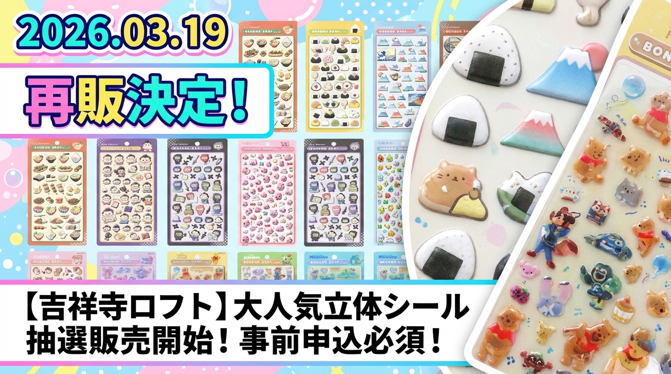 この記事では、吉祥寺ロフトでの立体シール抽選販売の概要から、購入できると予想される商品の詳細、当選後の流れや注意事項まで詳しく解説していきます。