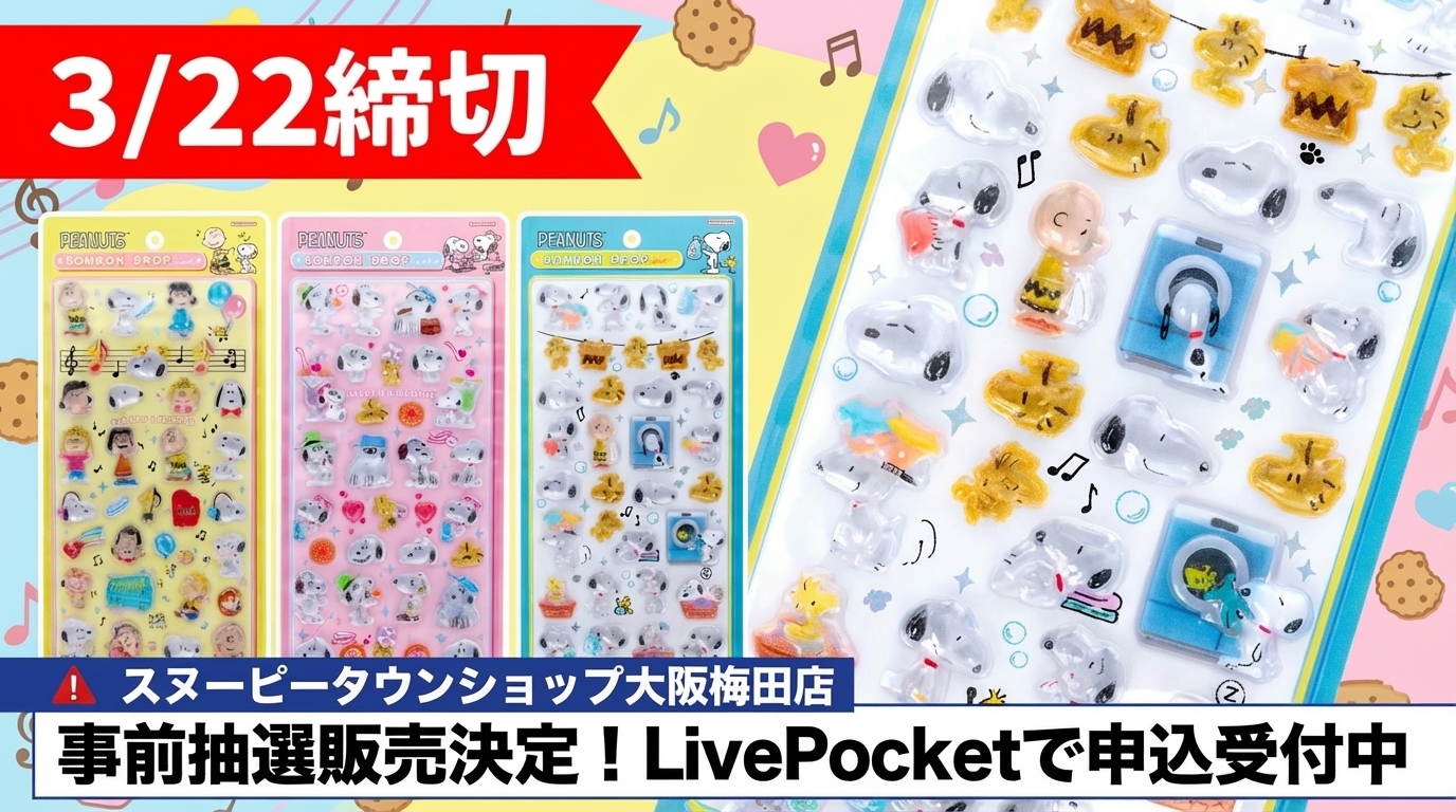 絵柄によっては早期に品切れとなる可能性もあるため、購入したいシールの候補をいくつか決めておくことをおすすめします。また、当日の在庫状況によっては当選された方でも購入できない場合もありますのであらかじめ理解しておきましょう。