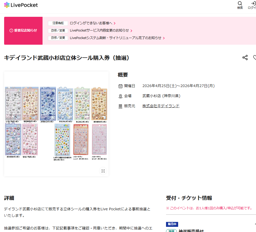 大人気のボンボンドロップシールを確実に手に入れるための貴重なチャンスです。キデイランド武蔵小杉店での販売は完全抽選制となっているため、4月16日までのエントリーを忘れずに行いましょう。本人確認が非常に厳格に行われるため、事前に有効な身分証があるかチェックしておくことが当選後のスムーズな購入に繋がります。