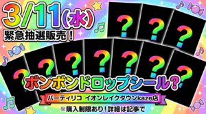 キデイランドアミュプラザおおいた店にて、大人気商品「ボンボンドロップシール」などを含むシールコーナーの入場整理券抽選が実施されます。