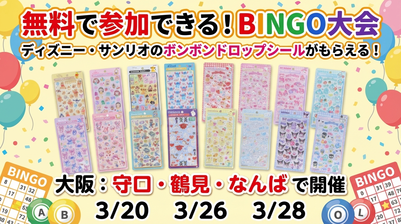 【入場・参加無料】大阪守口・鶴見・なんばで開催!ボンボンドロップシールがもらえる無料BINGO大会開催✨【2026年3月】