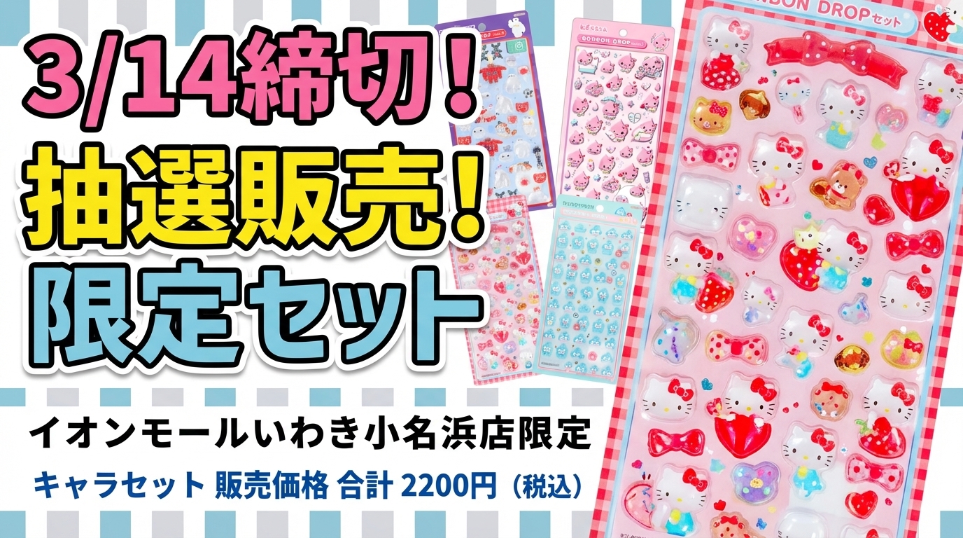 【3/14締切】全4種!サンリオ&ディズニーボンボンドロップシールの抽選販売が決定!@パーティリコ イオンモールいわき小名浜店