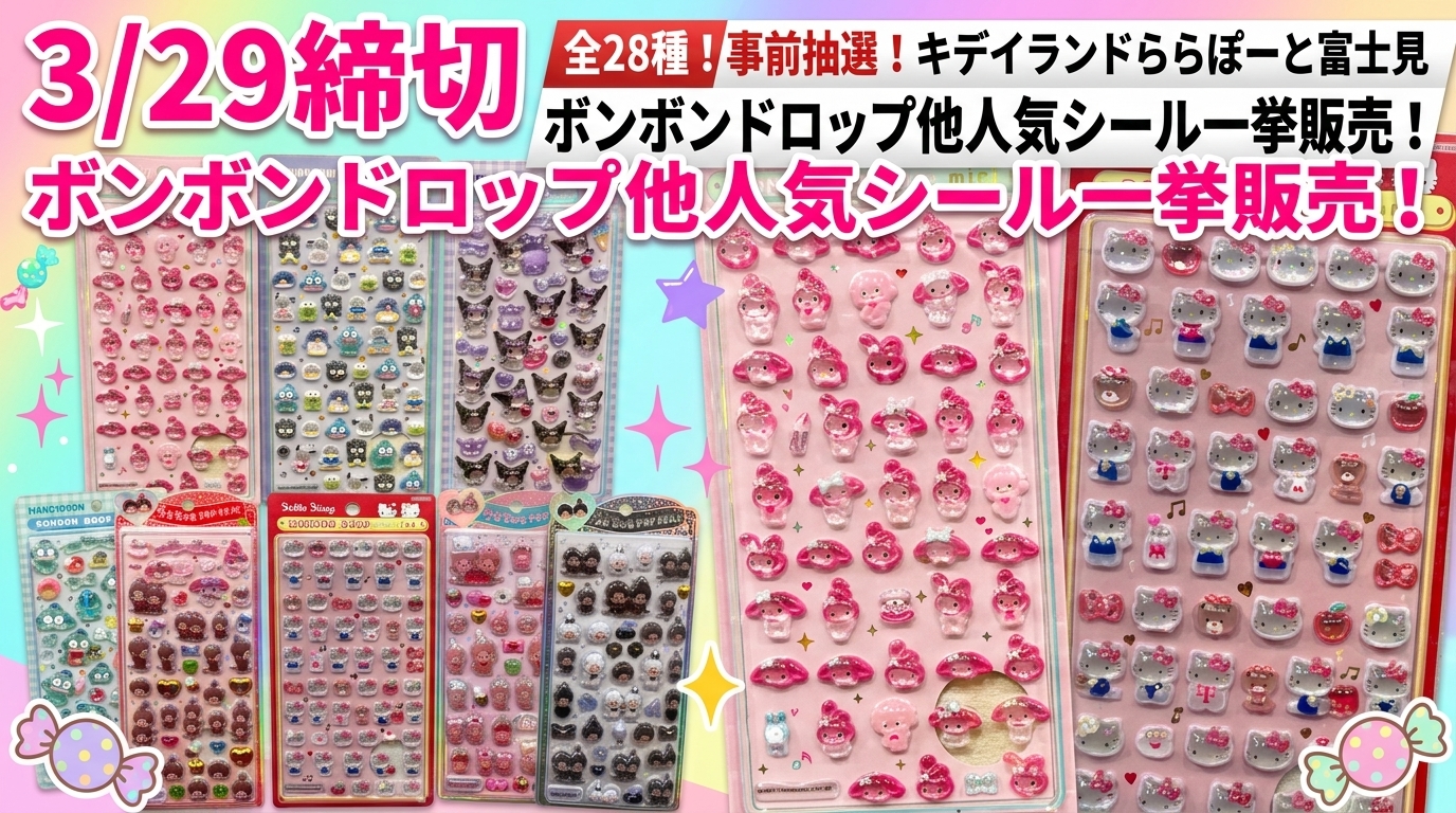 【3/28締切】最大10枚GET!ボンボンドロップシールの抽選販売が決定!@パーティリコ 川崎ルフロン店