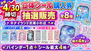 パーティリコ イオンレイクタウンkaze店限定で、「プチドロップステッカー」の購入券がLivePocketによる事前抽選で配布されます。