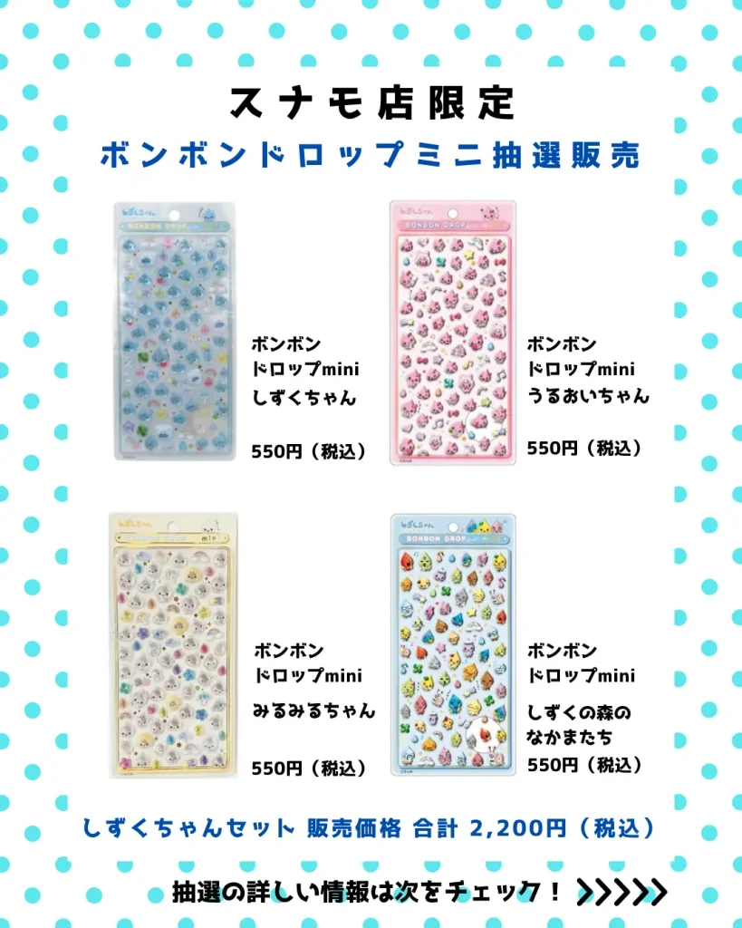 | 対象商品 | ボンボンドロップシールmini しずくちゃんセット(4種各1枚入り) |