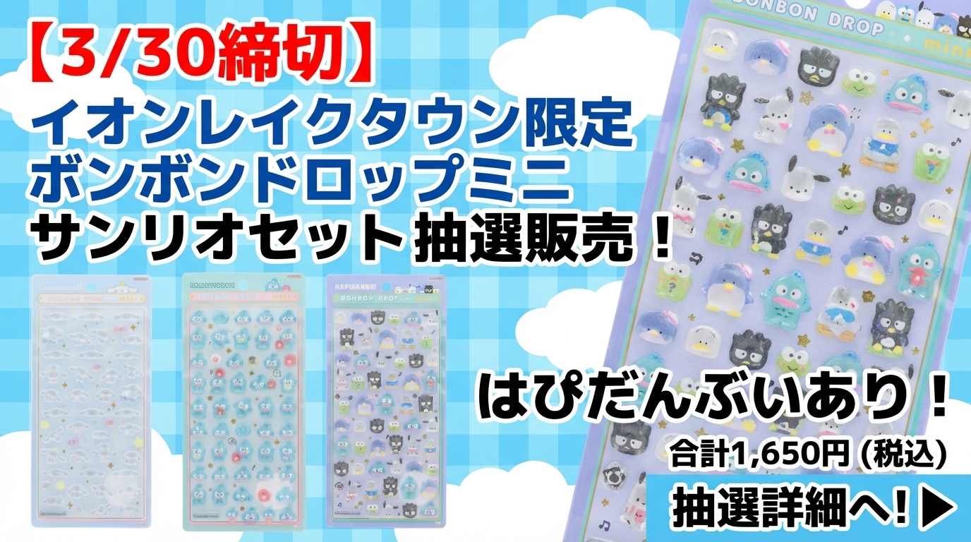 SNSや口コミで話題沸騰中のボンボンドロップシールをはじめとする立体シール類について、仙台ロフトでの販売方法が発表されました。非常に高い人気を誇る商品であるため、混雑回避と安全確保を目的とした事前抽選制による入場制限が行われます。
