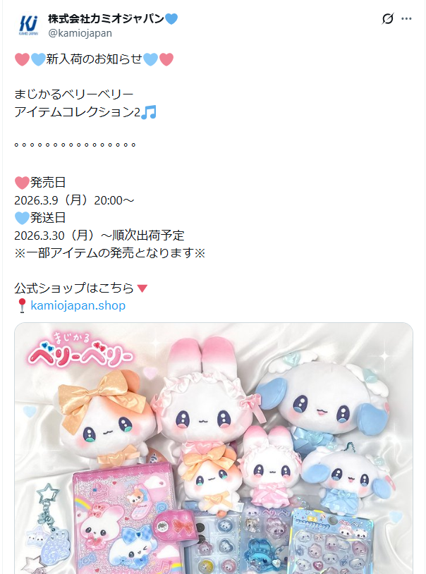 まじかるベリーベリーのアイテムコレクション2は、2026年3月9日(月)20:00よりカミオジャパン公式ショップにて発売されます。