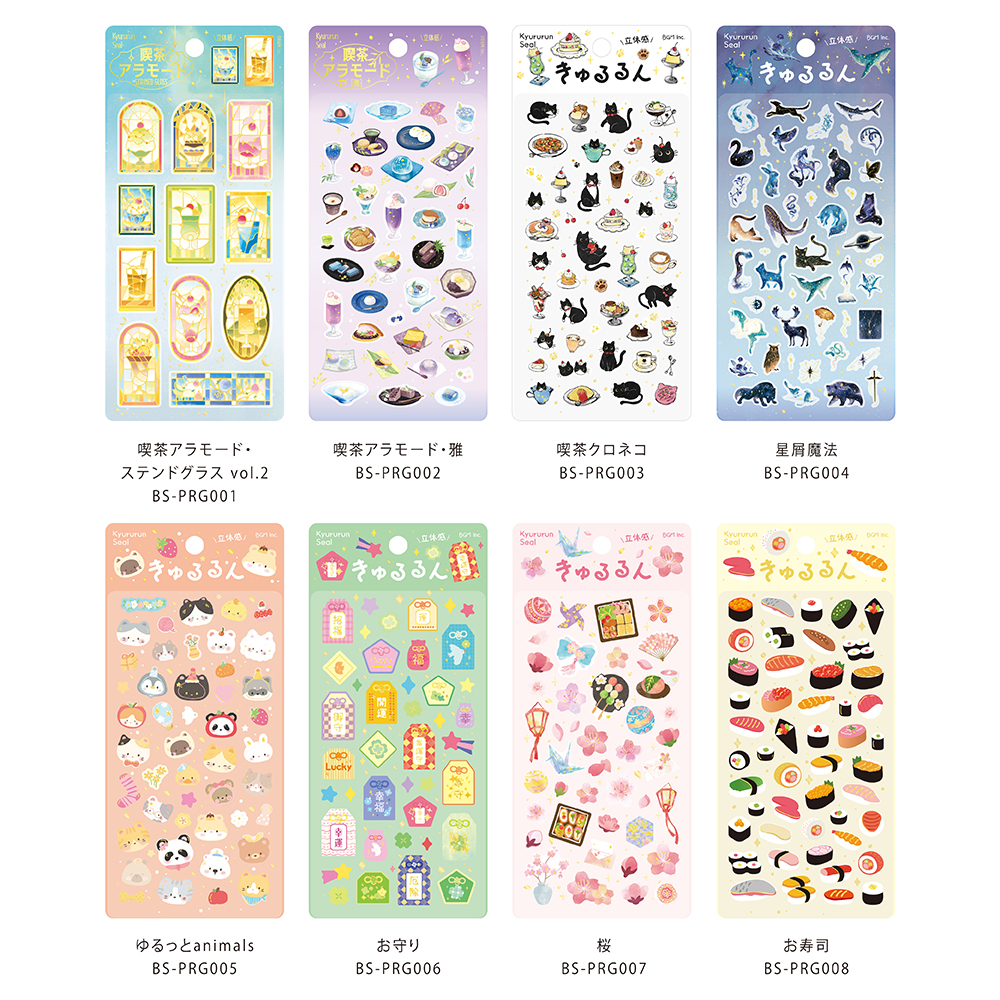 2026年2月20日(金)に発売される「きゅるるんシール vol.2」は、ラメと箔押しが輝くぷっくりとした立体感が魅力のアイテムです。全8種類のラインナップは、喫茶モチーフから桜、お寿司まで多岐にわたり、どれもコレクションしたくなる可愛さです。価格は税込528円。店頭で見かけた際は、ぜひその輝きを手に取って確かめてみてください。