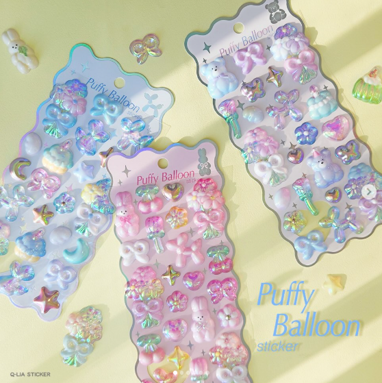 文具ファンやシールコレクターの間で話題をさらっているメーカー・クーリアから、驚きの新作情報が飛び込んできました。今回登場するのは、まるで本物のバルーンを閉じ込めたような立体感が魅力のパフィーバルーンステッカーです。ぷっくりとしたフォルムにオーロラ加工が施されたこのシールは、光を反射してキラキラと輝き、手にするだけで気分が上がるような仕上がりになっています。