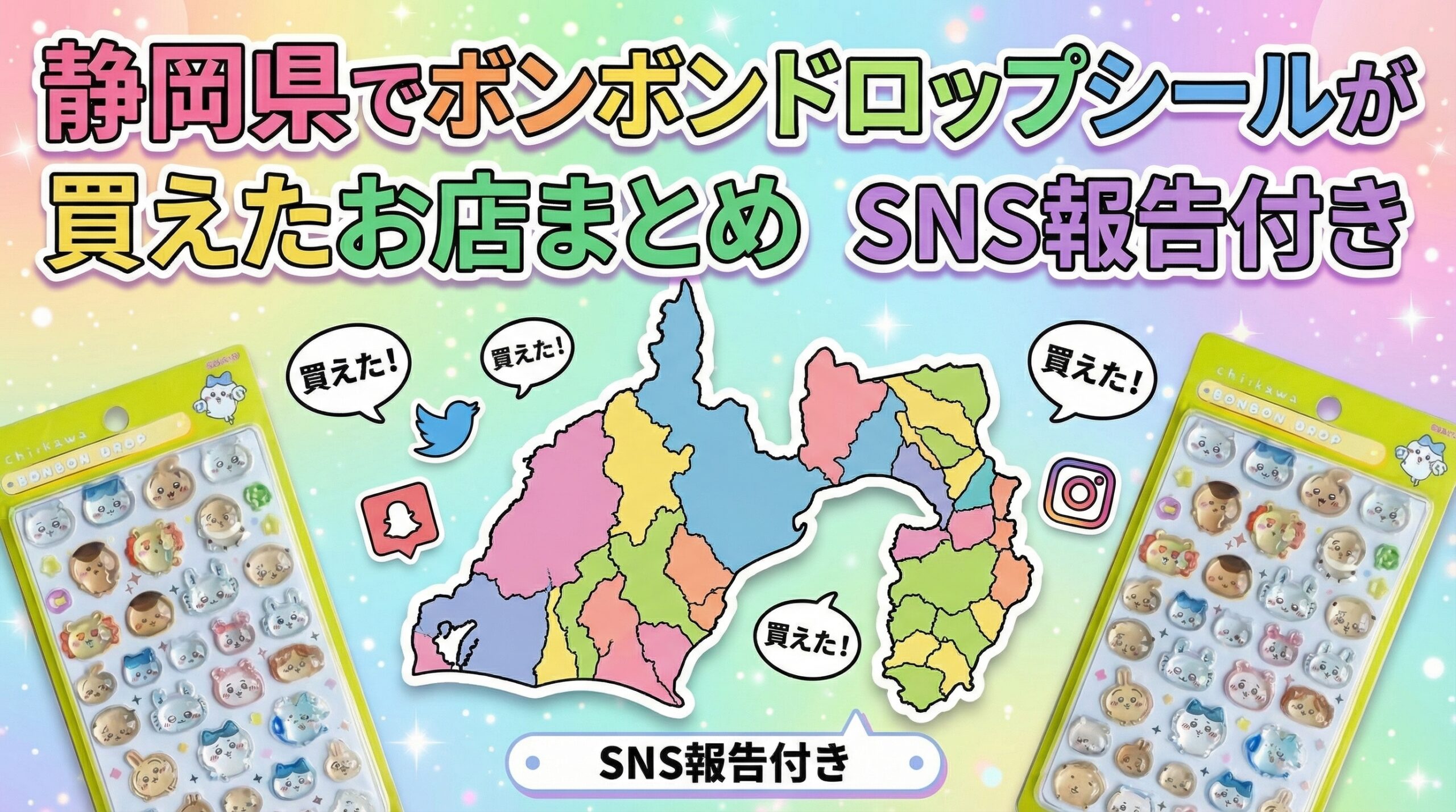 静岡県内で大ブーム中の「ボンボンドロップシール」を探している人へ🎉。SNS上の購入報告や入荷情報をもとに、静岡市・浜松市・沼津市・富士市・藤枝市など各エリアでボンボンドロップシールが買えたお店をまとめました。文房具専門店から大型モール内の雑貨店まで、最新の入荷情報とともに店舗をリストアップ📋。