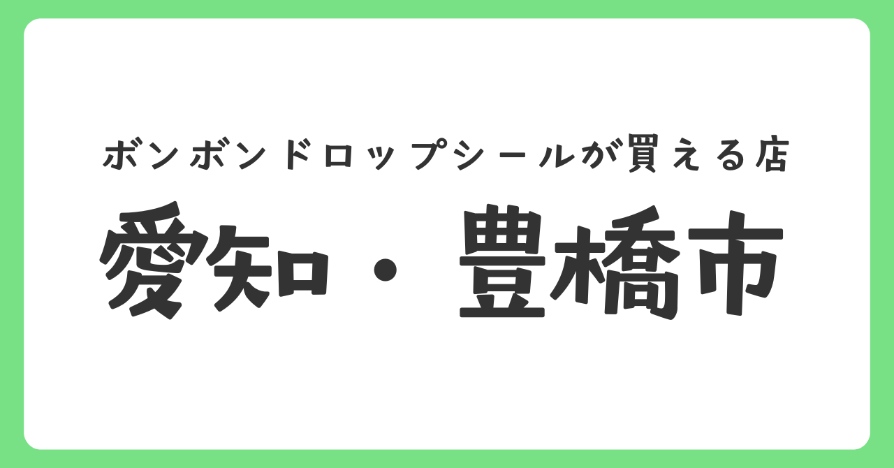愛知県豊橋市では、ボンボンドロップシールは豊橋駅前の書店や雑貨店に加え、イオン豊橋南、アピタ向山、ドンキホーテなど大型商業施設内の文具やキャラクター雑貨コーナーで見つかりやすい傾向があります。