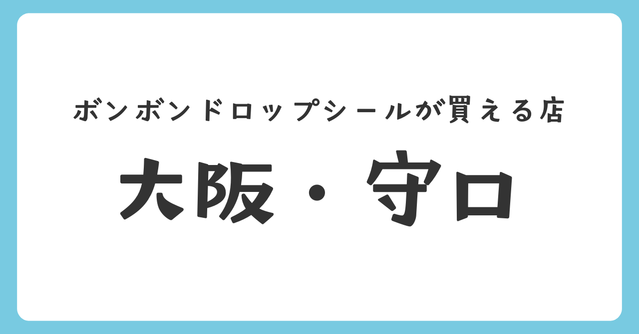 | 未来屋書店 イオンモール大日店(守口市大日東町1-18 イオンモール大日3F) | 大型書店+文具コーナー併設。「スーパーにたくさん売っていてびっくりした」「書店の文具売場でボンボンドロップを大量発見」などの声があり、書籍のついでにシールを探す人も多い。ラインナップは定番柄中心だが、タイミングによっては人気キャラも棚に並ぶ。午前中に行くと在庫に出会える可能性が高い。 |