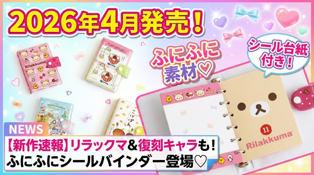 【新作】2026年4月発売!リラックマやにゃんにゃんにゃんこの復刻デザインも!新作「ふにふにシールバインダー」が購入できる!