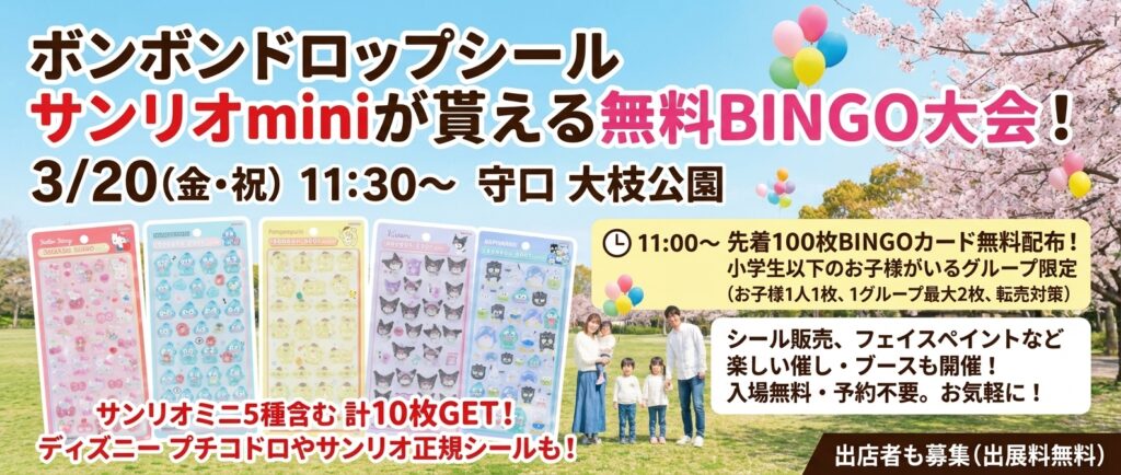 【入場・参加無料】大阪守口・鶴見・なんばで開催!ボンボンドロップシールがもらえる無料BINGO大会開催✨【2026年3月】